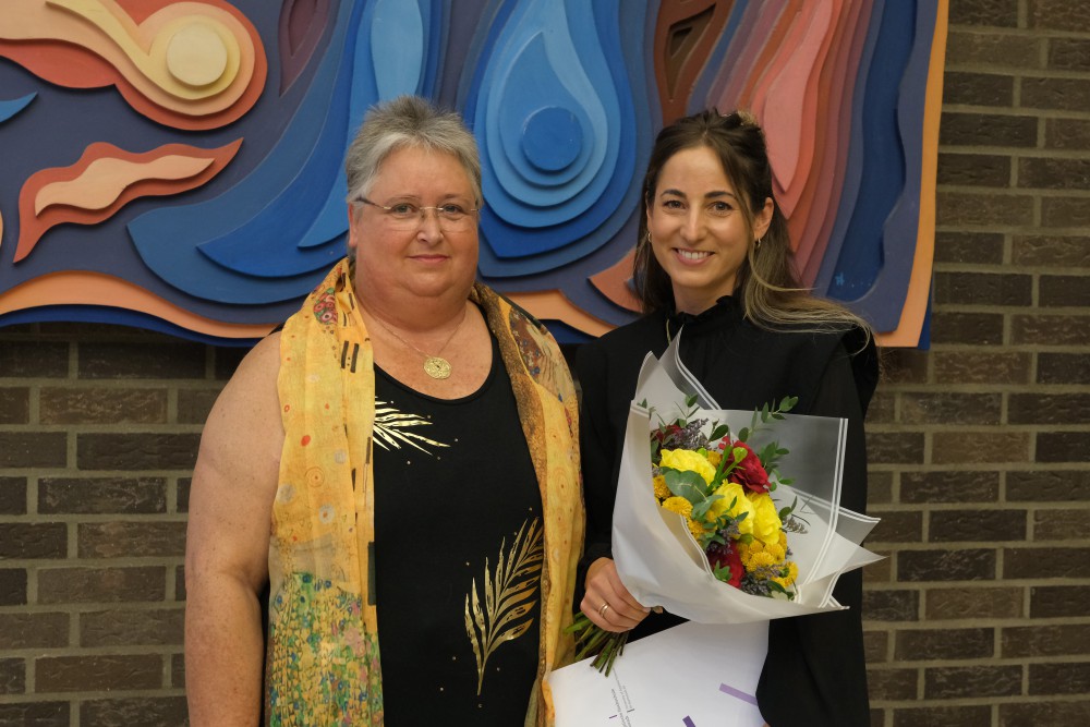 Preisträgerin Lisa Raubuch (rechts) und Dorothea Staniczek (stellvertr. Vorsitzende der Evangelischen Hochschulgesellschaft)