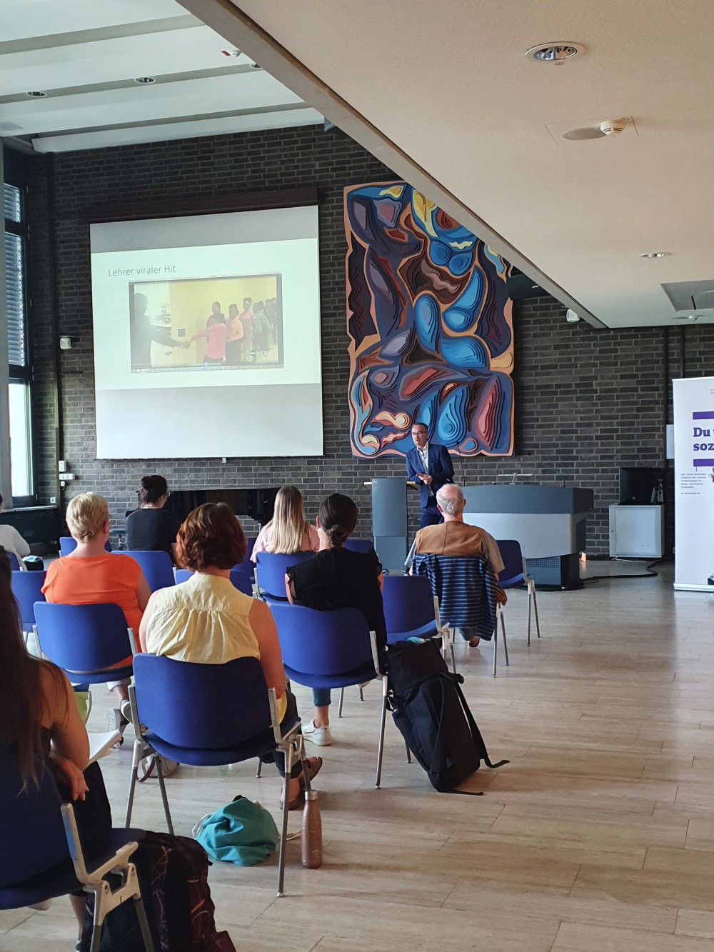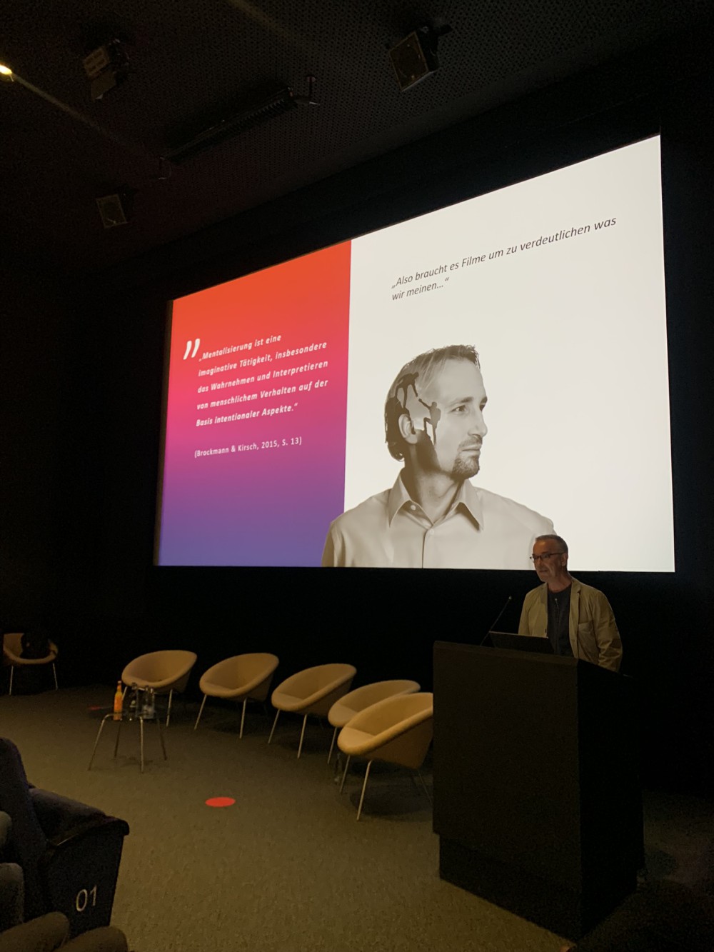 Anhand einer kurzen theoretischen Einführung und mehrerer Filmausschnitte wurden alltägliche Stresssituationen analysiert und eine mentalisierungsfördernde Haltung diskutiert. Interventionsmöglichkeiten wurden mit dem Publikum diskutiert. Melanie Henter (Uni Koblenz-Landau) hielt einen hervorragenden Vortrag zur nachhaltigen Implentierung mentalisierungsbasierter Pädagogik in Organisationen.