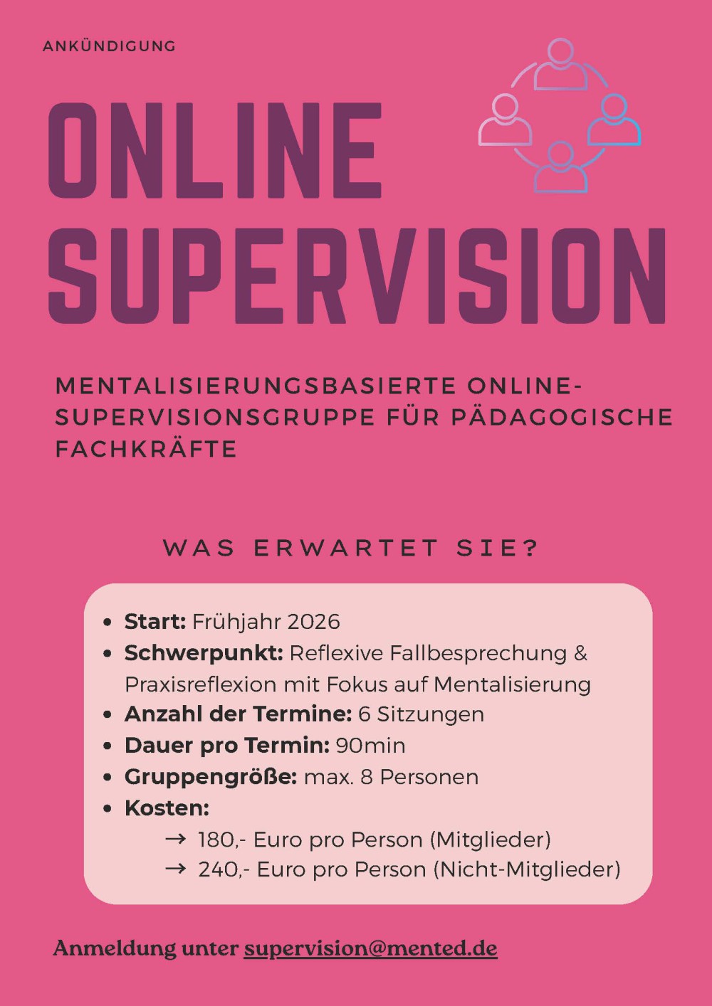 Anmeldung unter email: supervision@mented.de